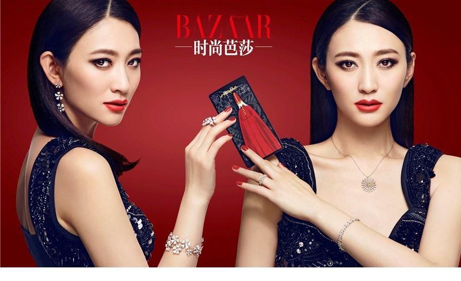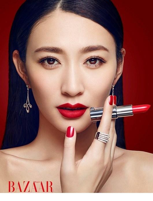 李小冉烈焰红唇光影交织 绽现倾城魅惑之姿