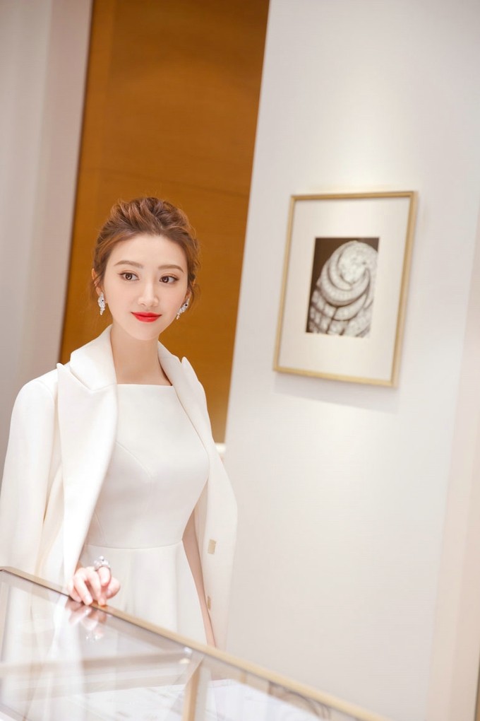 造型的成功,首先源于极致简约与点睛之笔的平衡。整体以纯净的白色为主调,一抹经典正红唇妆成为面部的灵魂,不仅提亮了整个妆容,更赋予其一种老派电影女主角般的贵气与故事感。妆容清透,摒弃了厚重粉感,着重突出她优越的“冷白皮”底子,腮红若有似无,让焦点全然凝聚于明眸与红唇之上。配饰选择也遵循了“少即是多”的原则,仅以纤细的金色项链与耳坠稍作点缀,毫不喧宾夺主,却精致地勾勒出锁骨的优雅线条。