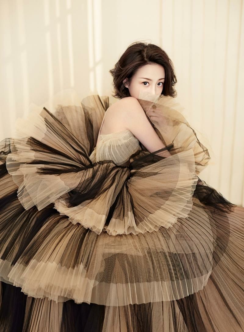 这组写真的核心魅力,在于其对“复古”与“仙气”这对看似矛盾气质的成功调和。一条超长叠式纱裙,以其层叠的褶皱与飘逸的质感,奠定了整个系列的复古基调,同时散发出不食人间烟火的清冷仙气。而另一套黑色经典纱裙与皮衣的搭配,则呈现出刚柔并济的视觉效果,仙气中透着一股不容忽视的酷感,展现了李溪芮气质中飒爽与柔美并存的多面性。
