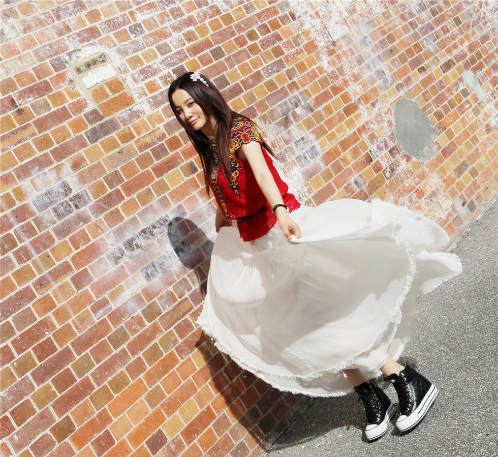陶红作为表演者,在这组静态影像中展现出了极高的表现力。她并非在“扮演”某个角色,而是在“成为”这个意境本身的一部分。她的眼神时而凝视远方,时而低垂内省,肢体放松而富有张力,与环境达成了一种非言语的、精神层面的默契。这种状态,使得观者的视线不会仅仅停留在她的外貌上,而是被引导至一个更广阔的、关于存在、时间与空间的冥想之中。