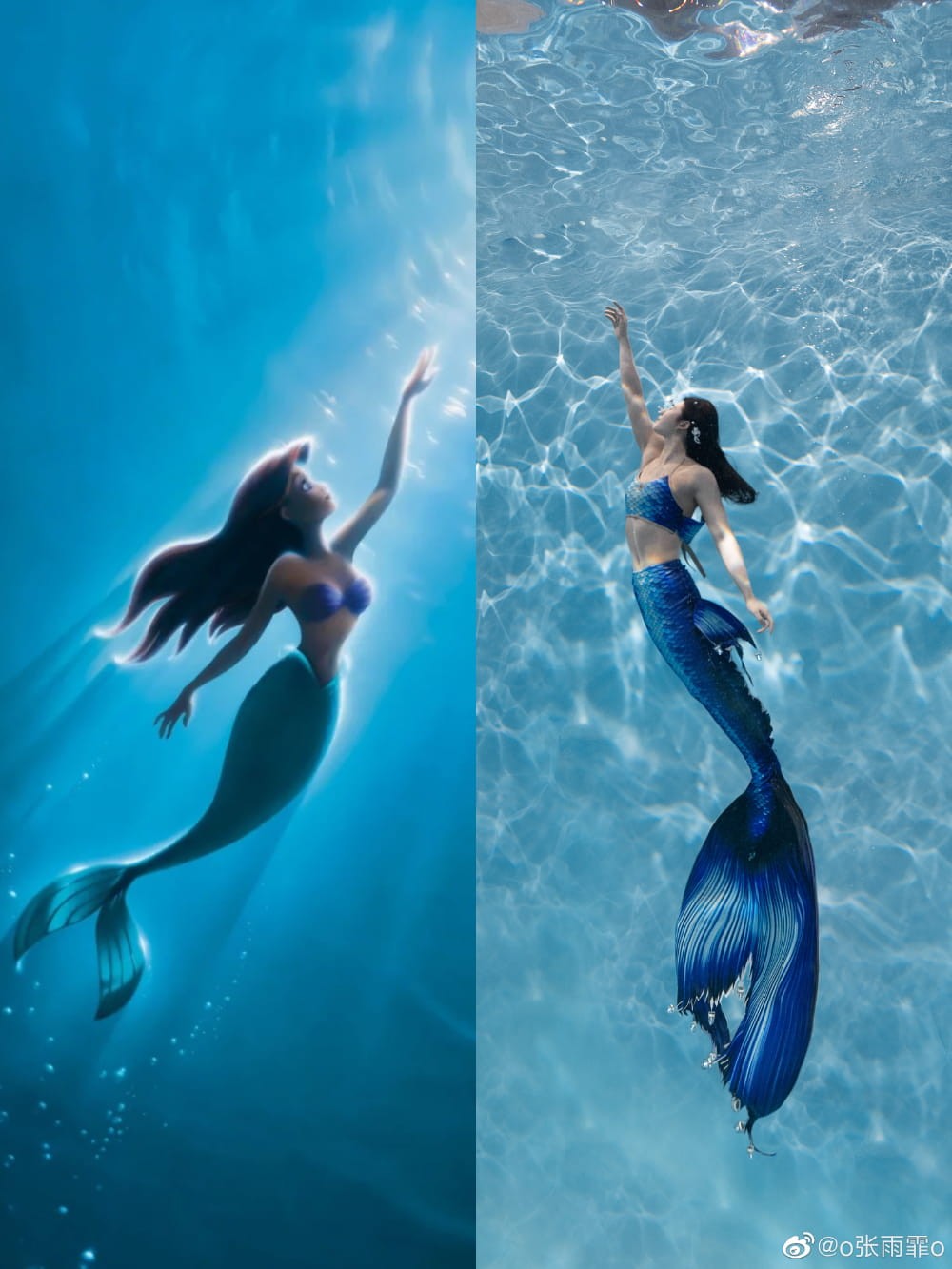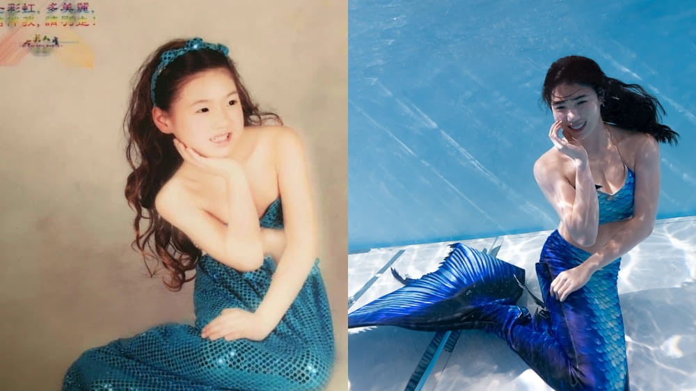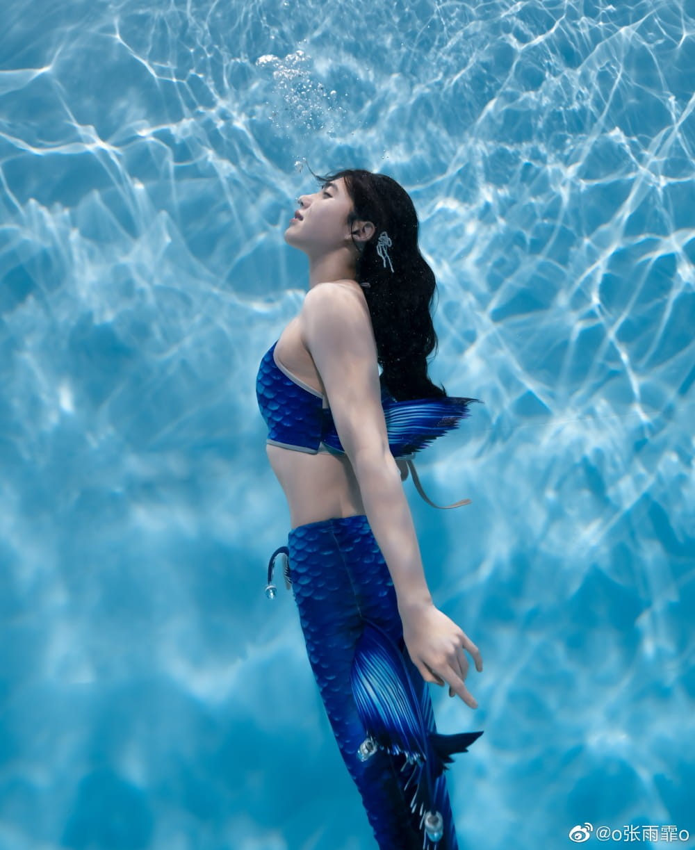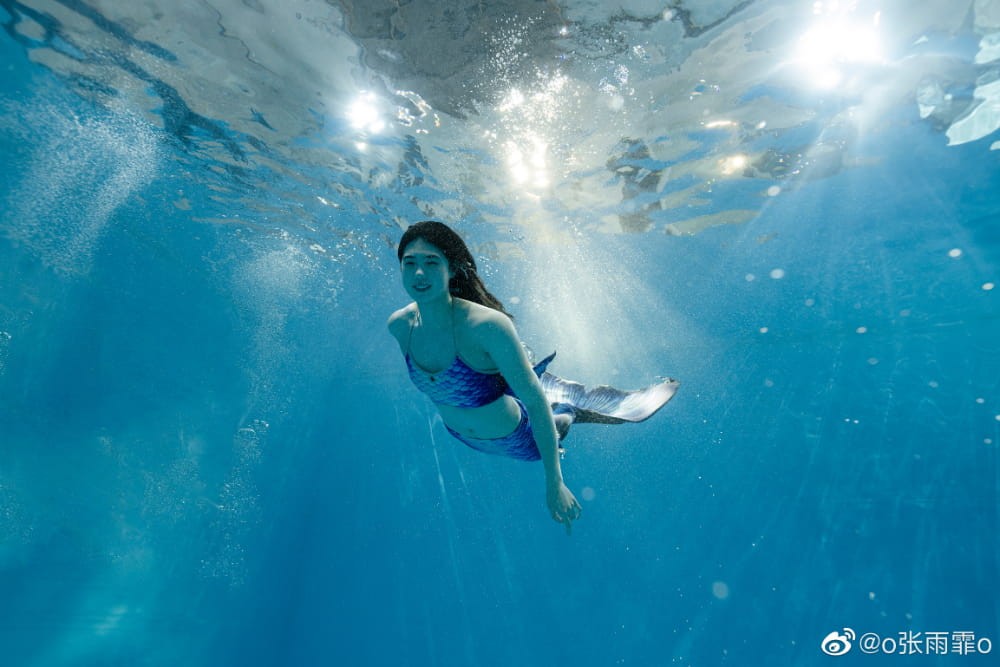 对张雨霏而言,“美人鱼”不仅是童话角色,更是她游泳生涯的浪漫起点。2022年庆祝24岁生日时,她曾俏皮地晒出童年时身披亮闪闪彩布扮演美人鱼的照片,并写道:“24年啦,唯一不变的是这只小美人鱼还在水里遨游。” 这份源自童年的热爱,在2023年化为了更为成熟和惊艳的演绎。她发布了一组在海底拍摄的“美人鱼”九宫格写真,配文满溢圆梦的喜悦:“把大海当天空飞行,小美人鱼圆梦啦。”